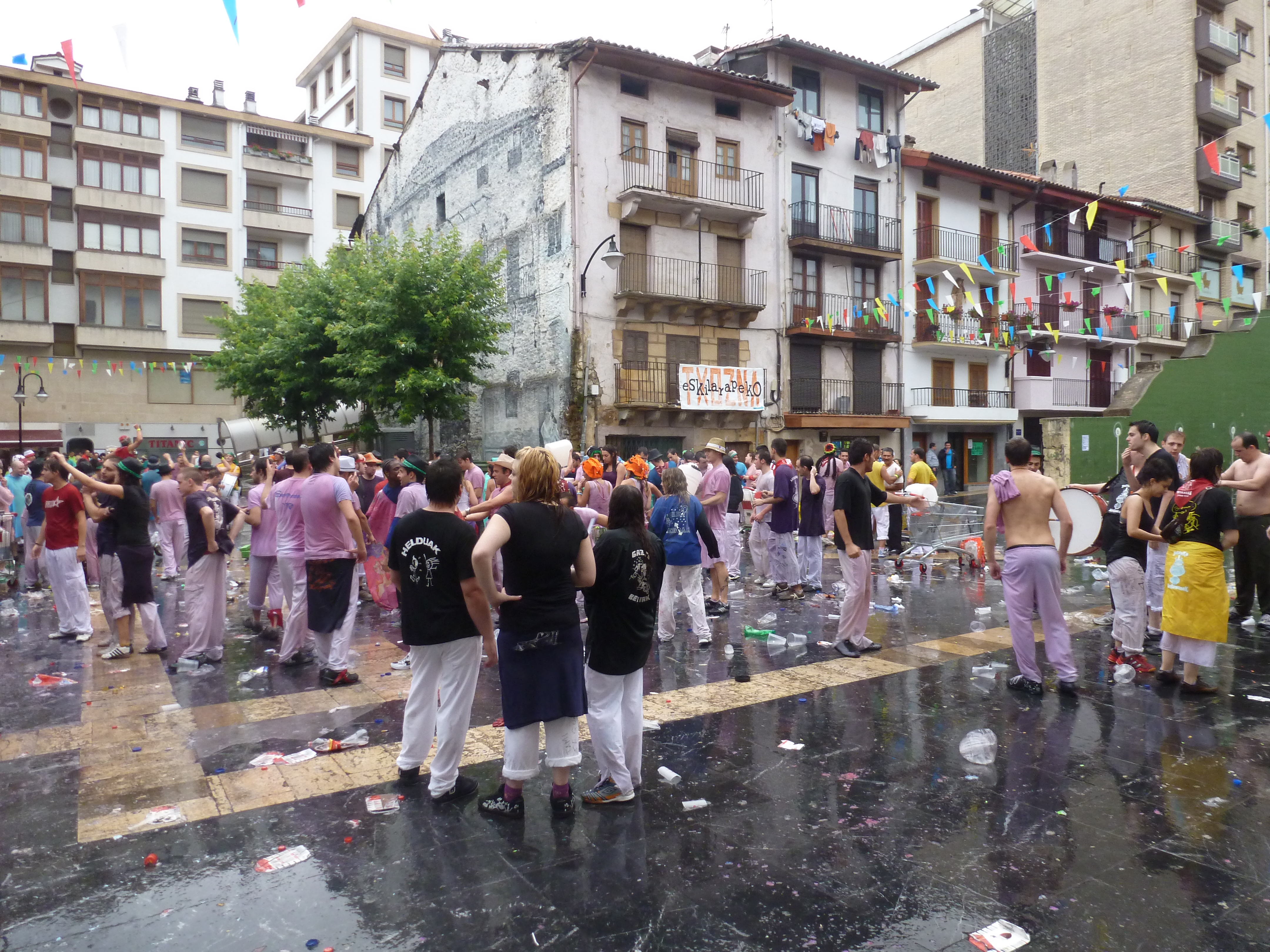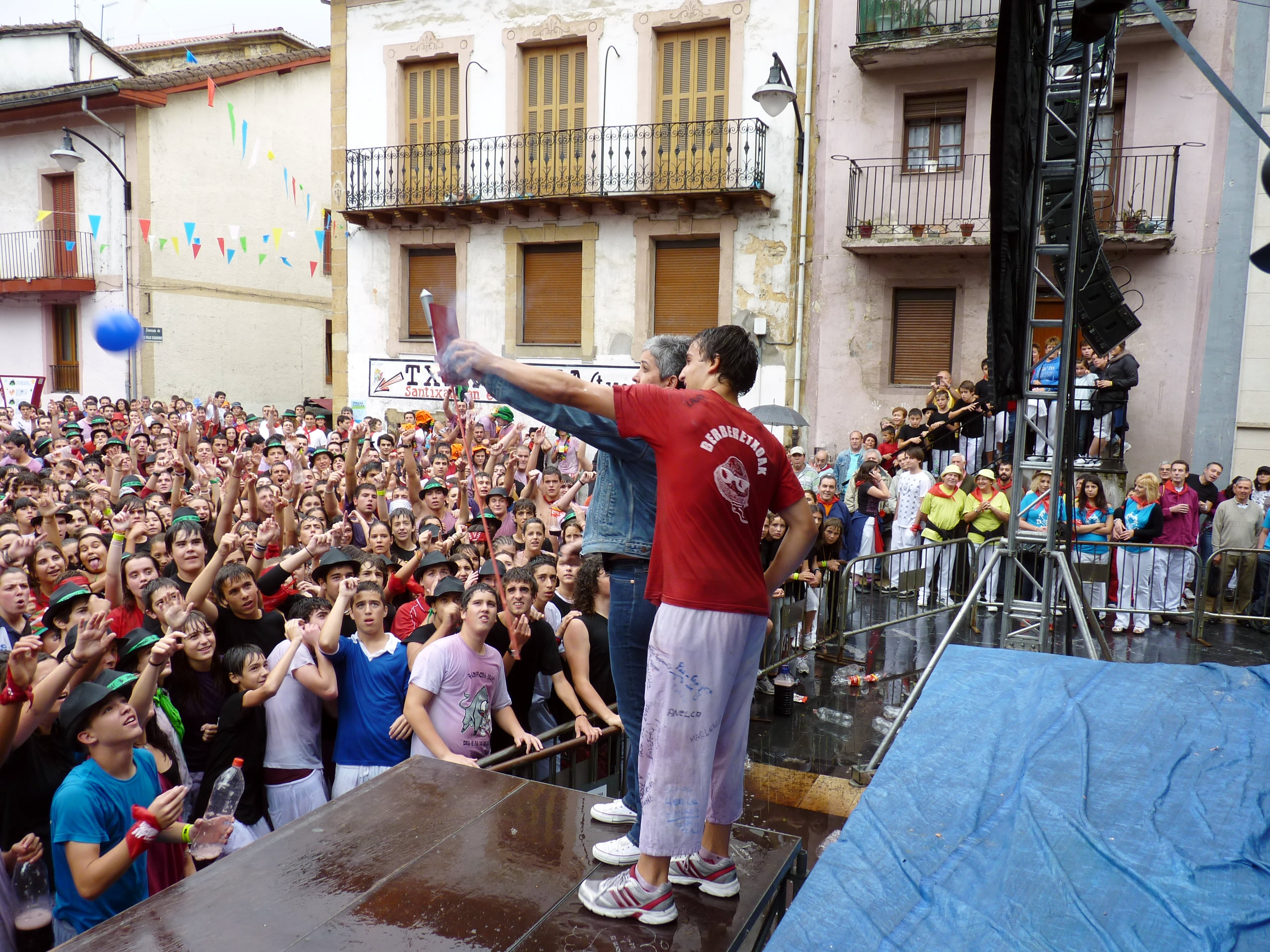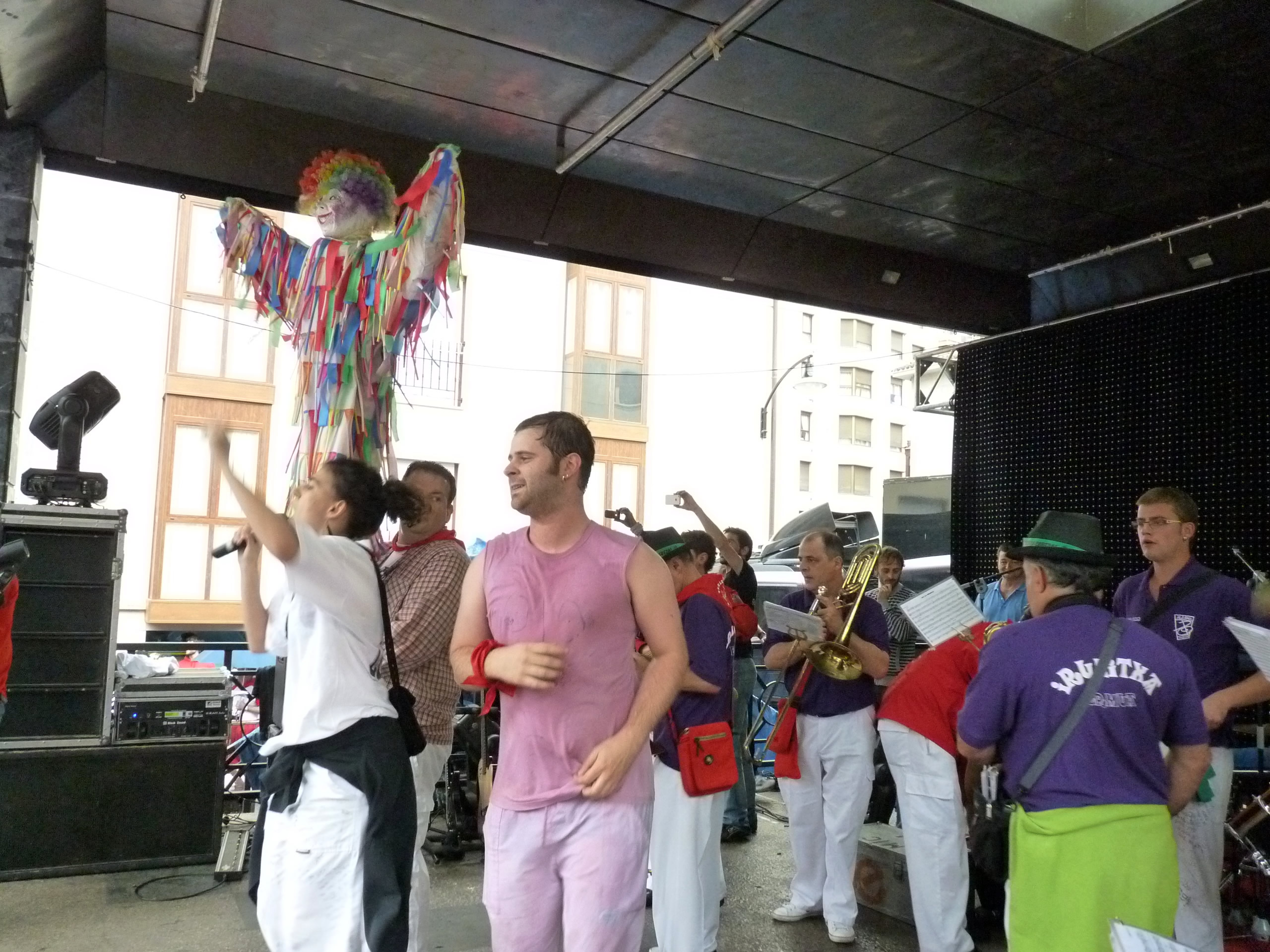 Colección de fotografìas que recogen el acto de presentación de txarangas en la Plaza Cardenal Orbe, el chupinazo y el pasacalles de las txarangas.