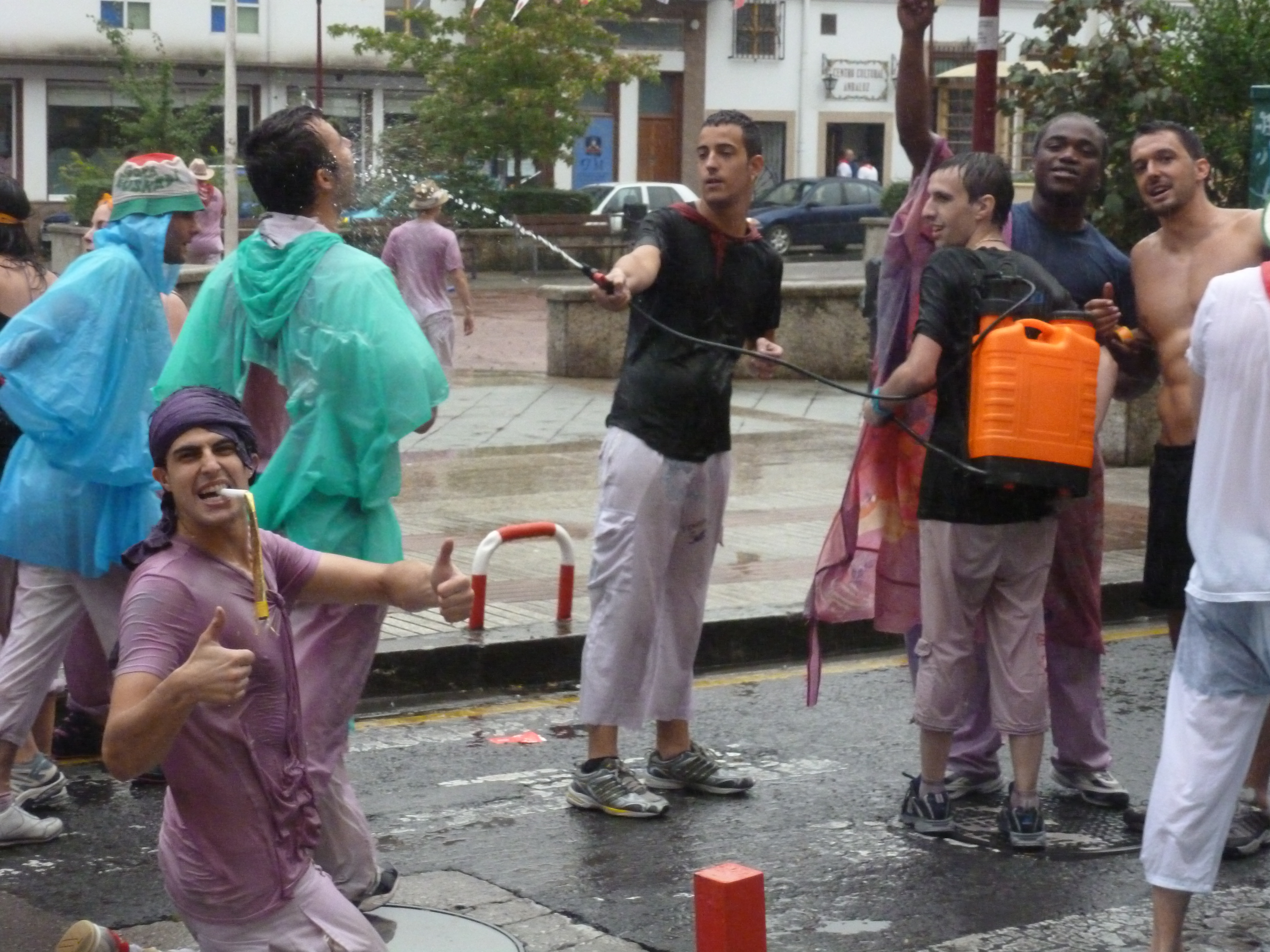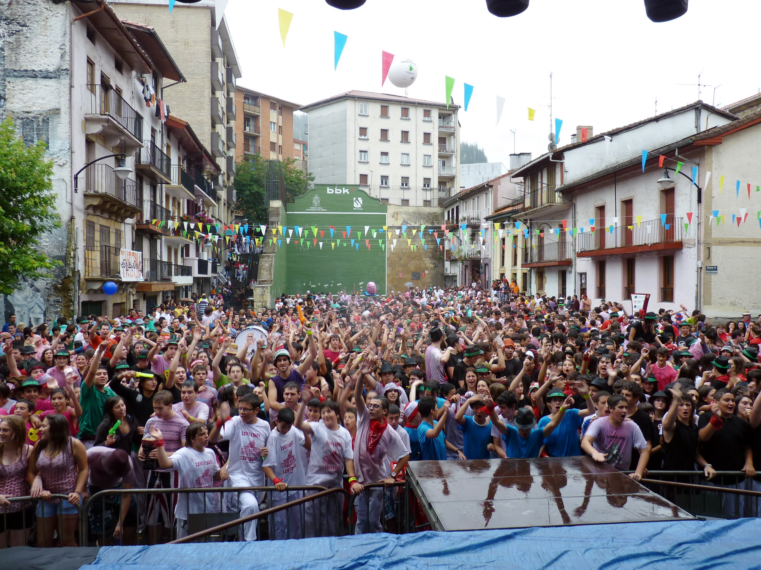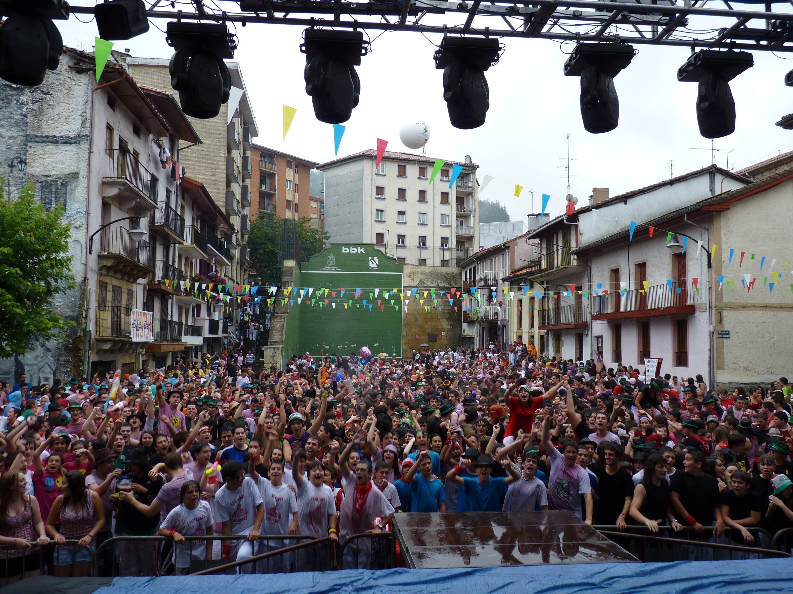 Colección de fotografìas que recogen el acto de presentación de txarangas en la Plaza Cardenal Orbe, el chupinazo y el pasacalles de las txarangas.