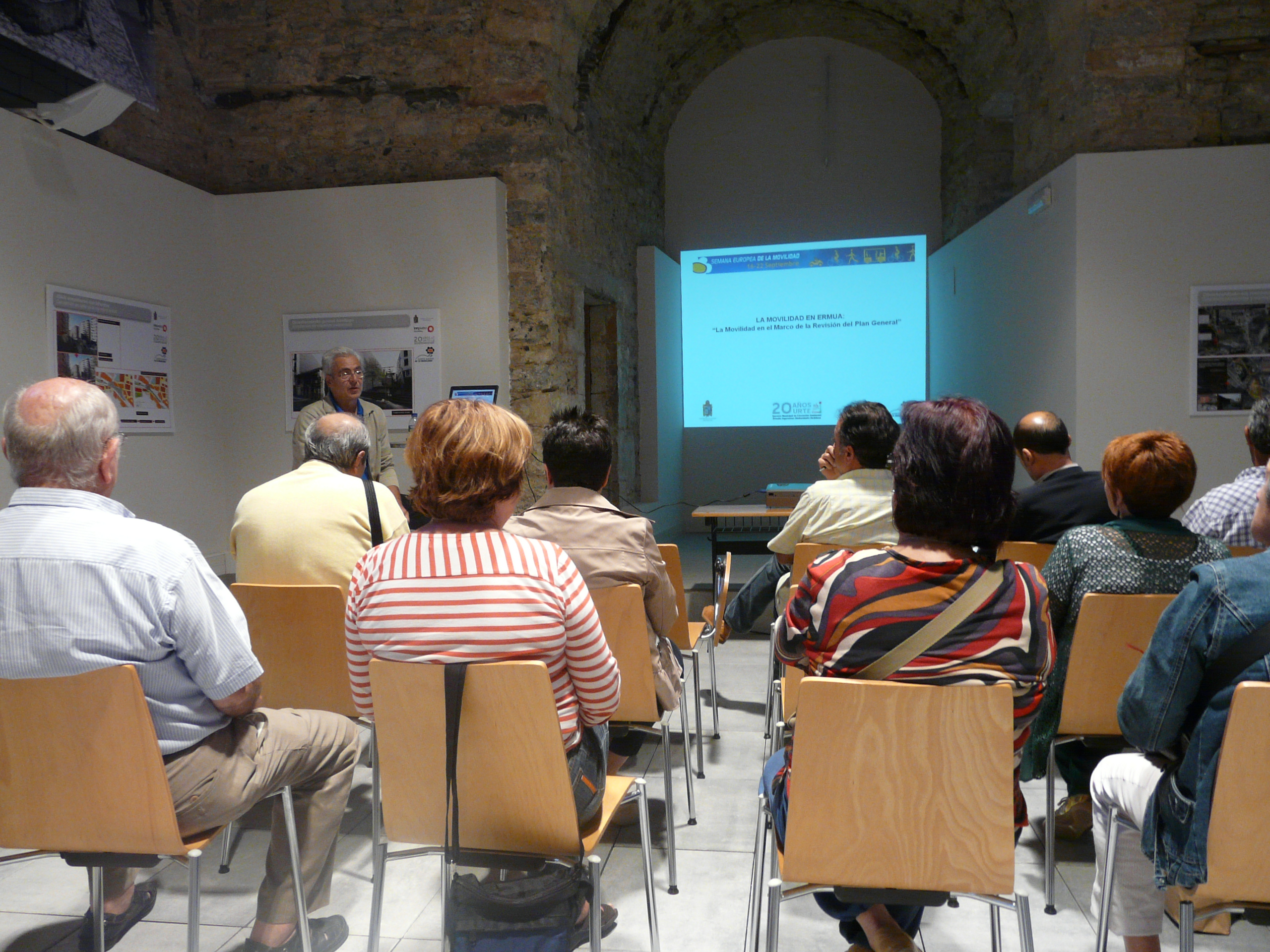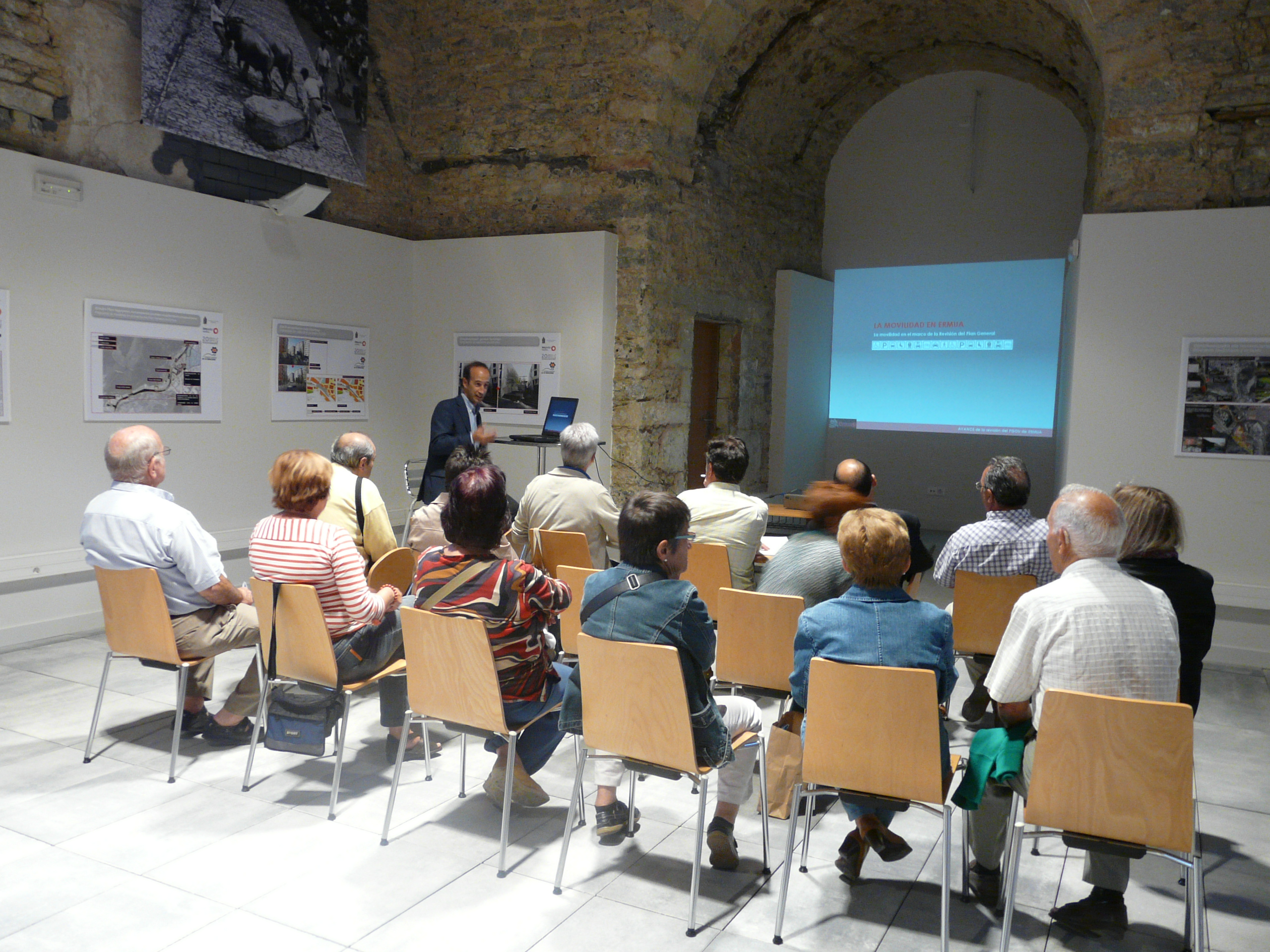 Imagenes de la charla sobre las propuestas para mejorar la movilidad en Ermua en la ermita de San Antonio.