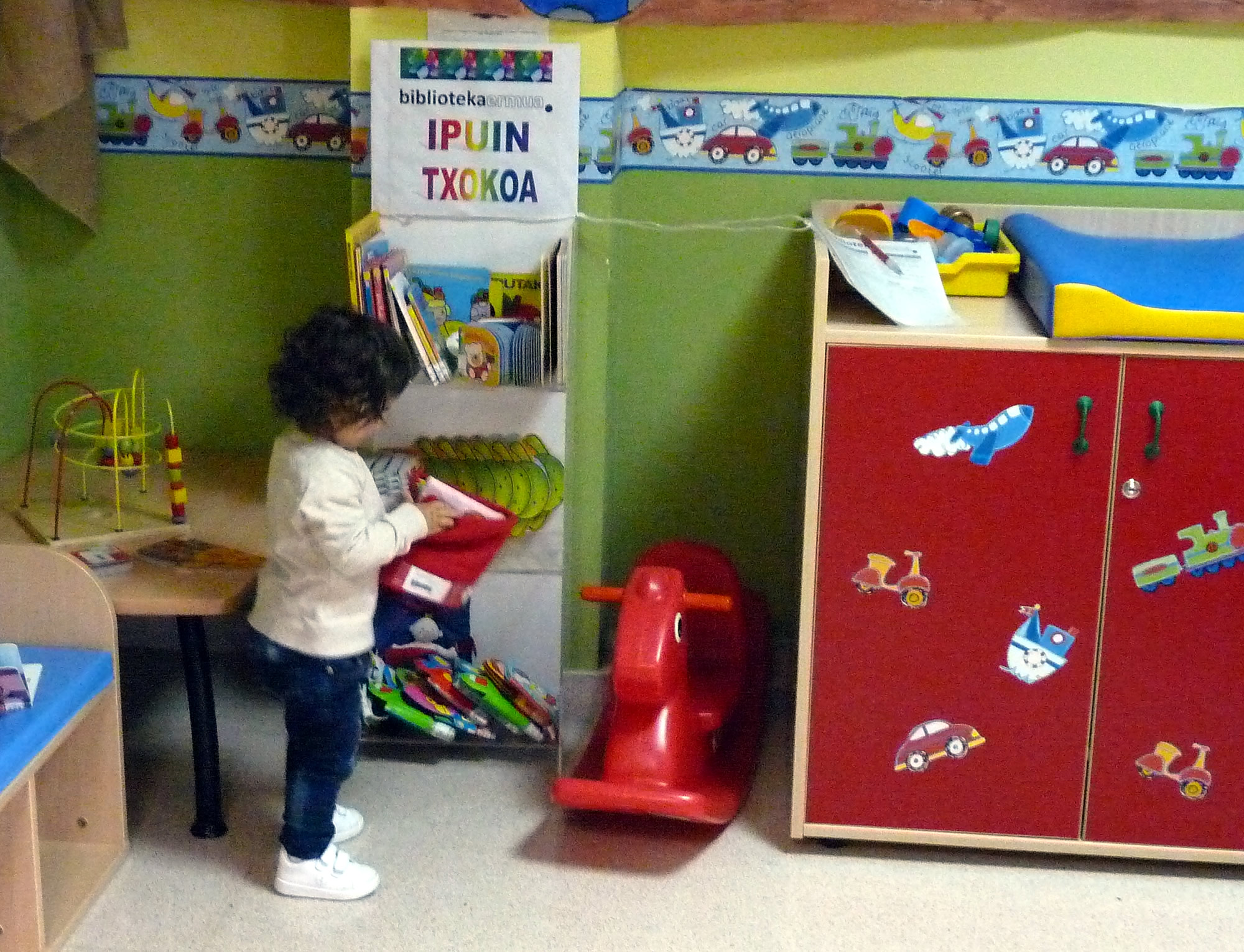 La Biblioteca Municipal ha renovado el punto de lectura que hay en la entrada de la Haurreskola. Por cuarto curso consecutivo, y dados los buenos resultados obtenidos en ediciones pasadas, se mantiene este espacio donde padres, madres y pequeños pueden elegir libros para leer en casa.