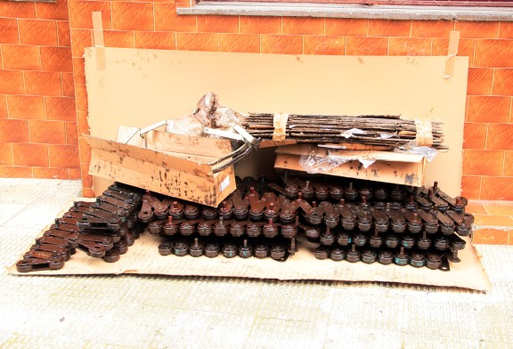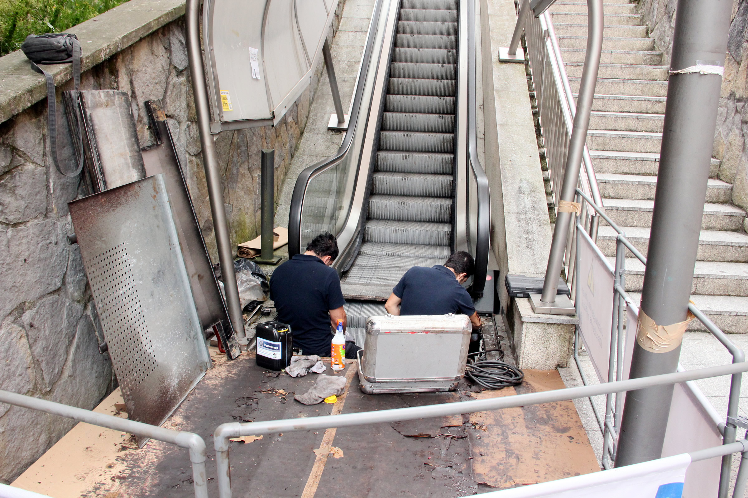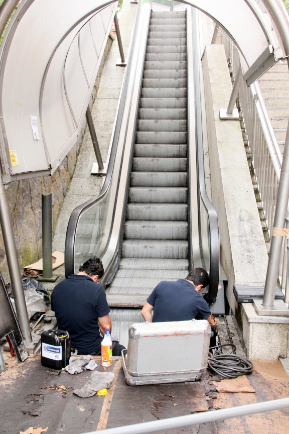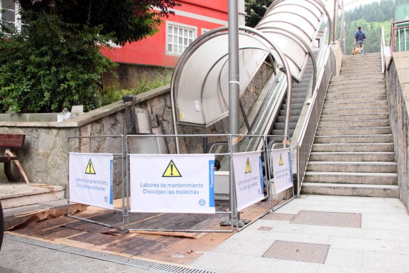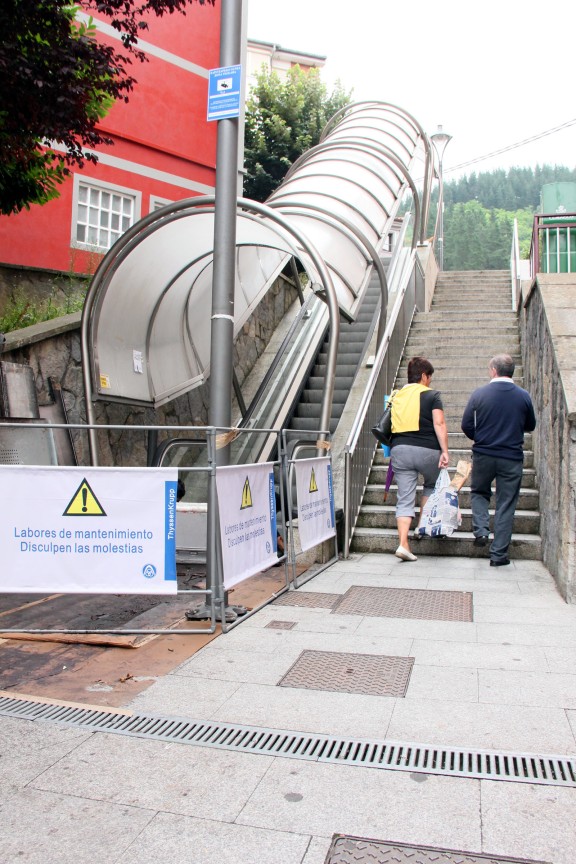 La empresa Thysenn sustituye la cadena de tracción de la escalera que va de las calles Iparragirre a Santa Ana, en Ermua.