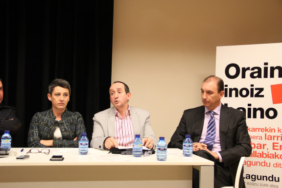 Galería fotográfica de la rueda de prensa ofrecida en Lobiano Kultur Gunea con motivo de la creación y puesta en marcha de un banco de alimentos.