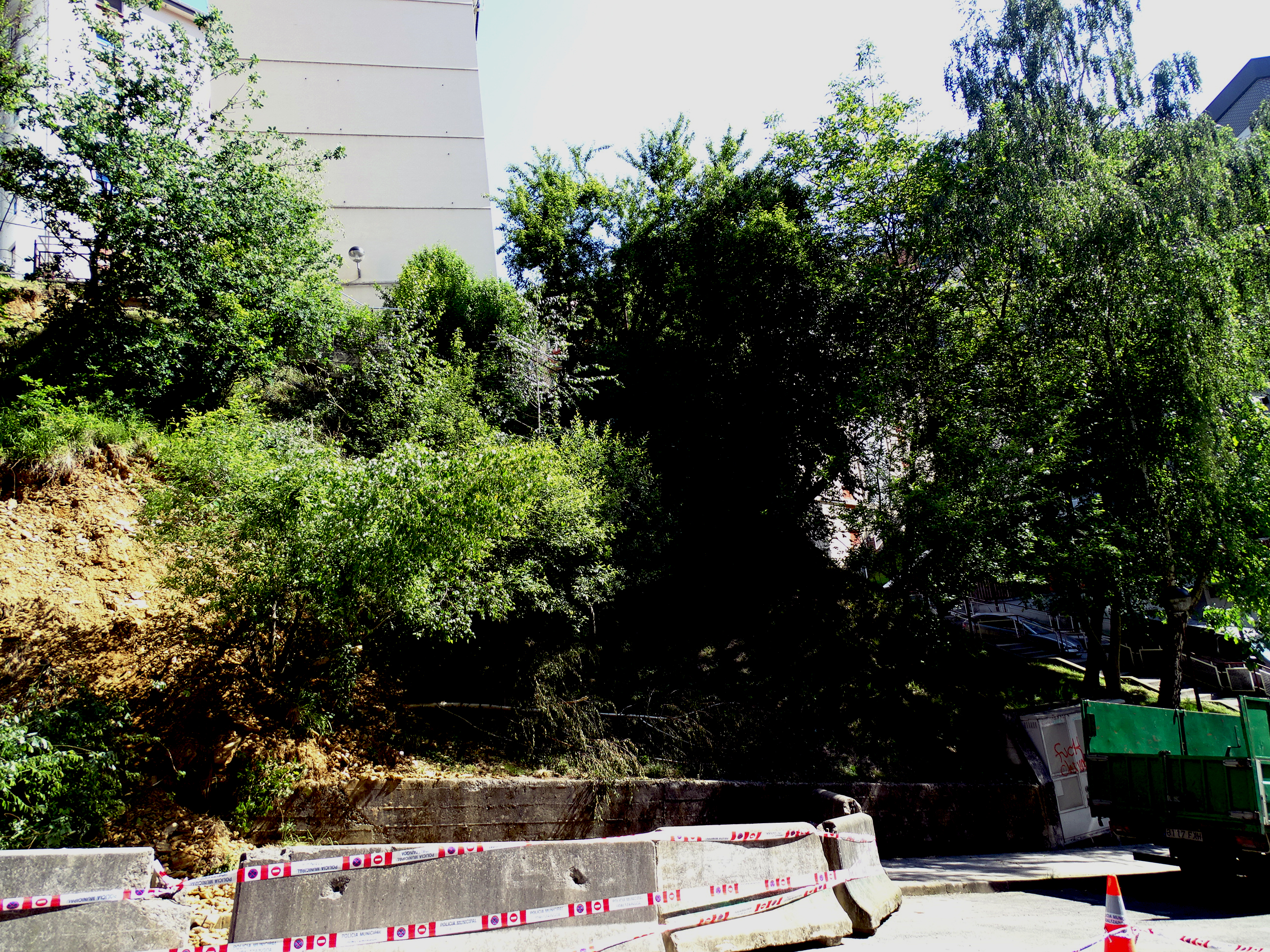 El talud de la calle Aldapa permanece estable y no se intuye riesgo inmediato alguno, según informan los/as técnicos/as municipales de urbanismo. Tampoco existe riesgo de desmoronamiento de las escaleras colindantes de acceso al barrio de Ongarai porque las mismas están sostenidas por una cimentación sobre pilotes y son independientes del terreno, han añadido. Parte de ese talud se deslizó ladera abajo en la madrugada del domingo día 10 a causa de las intensas precipitaciones.