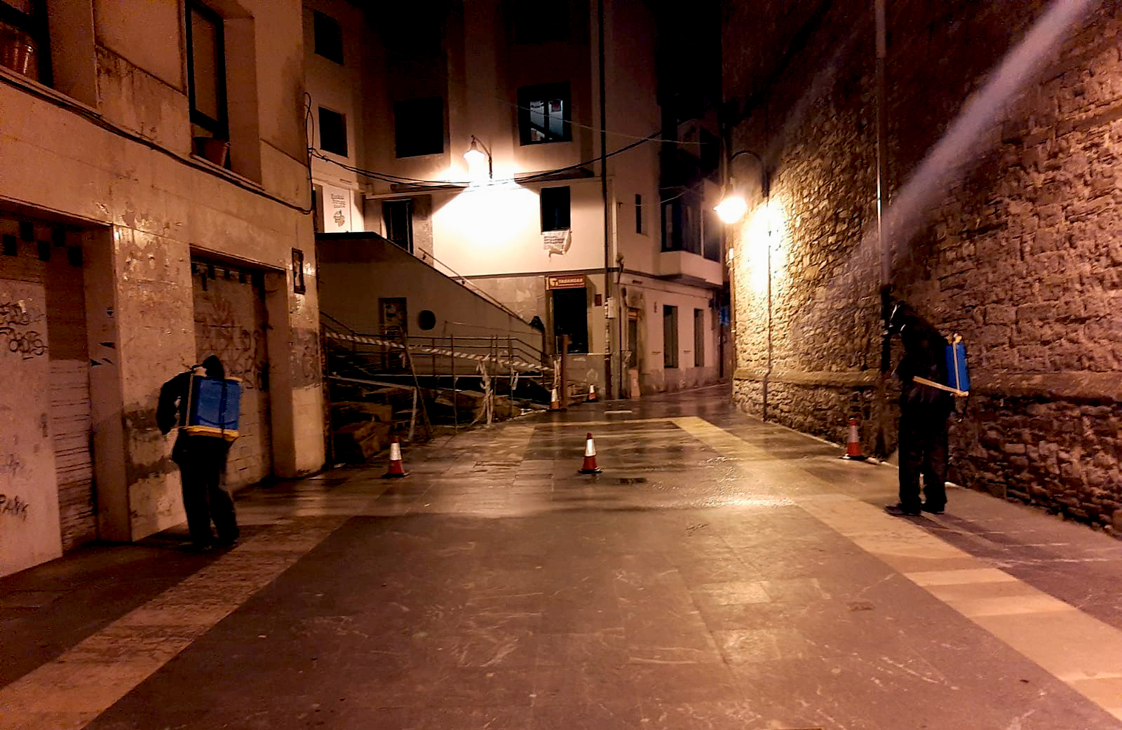 La Brigada municipal de Obras y Servicios ha retomado la tarea de aplicar un tratamiento antideslizante en algunas de las calles del casco urbano cuyo piso lo forman baldosas. La tarea ha empezado en Erdikokale y en esta fase abarca la plazoleta de Santiago y la peatonal de Zubiaurre hasta el cruce con Torrekua.