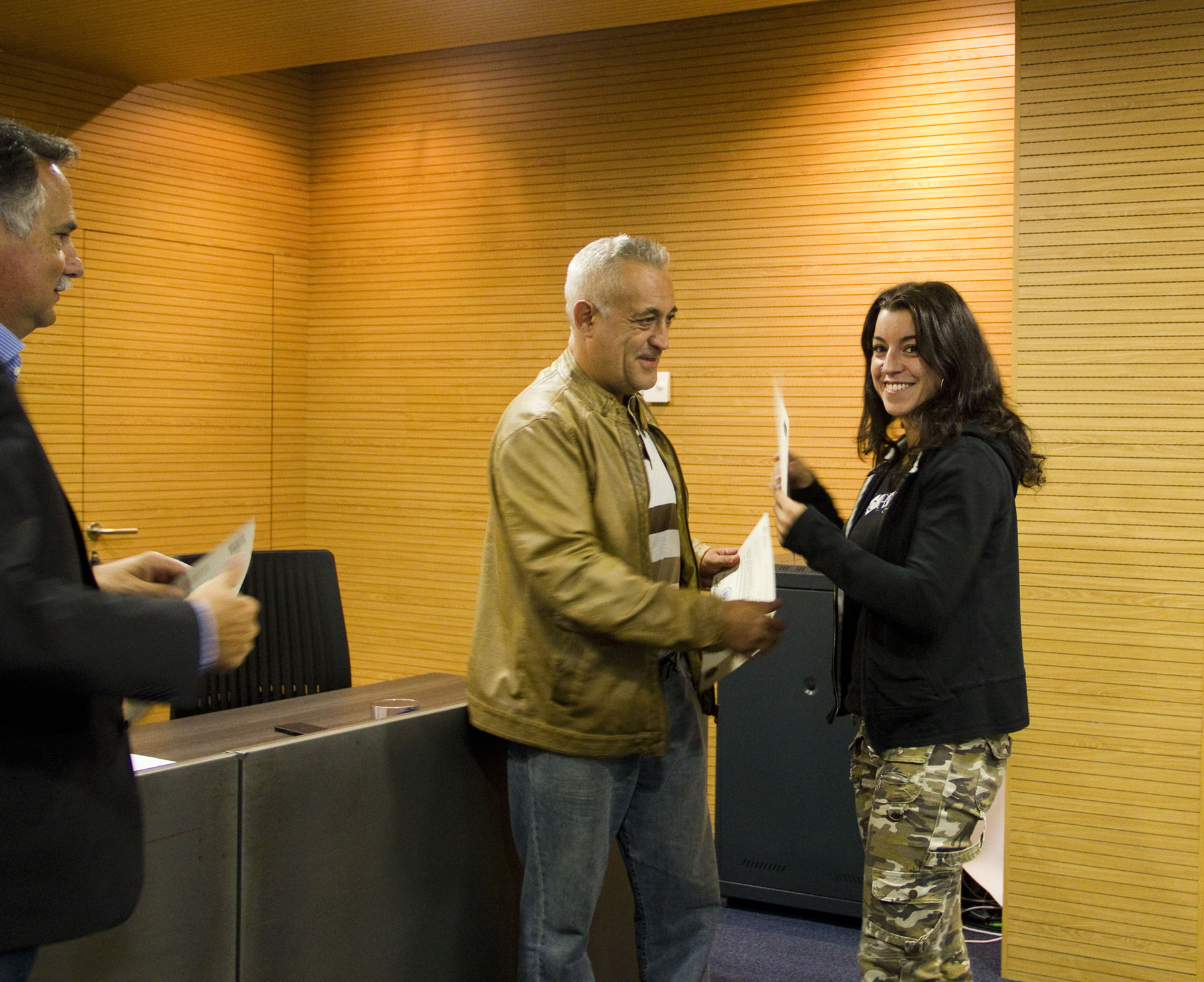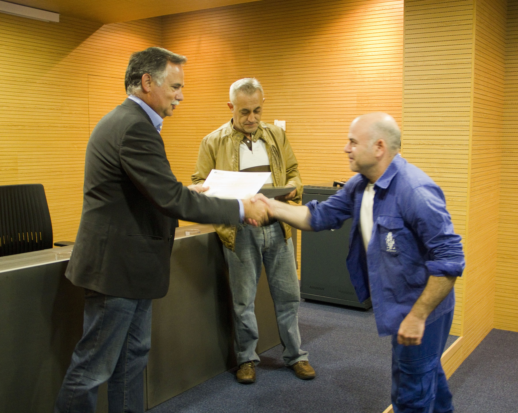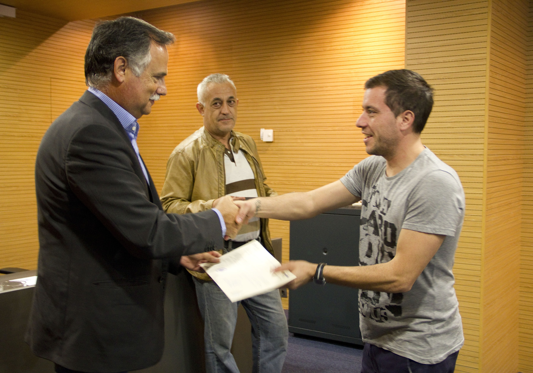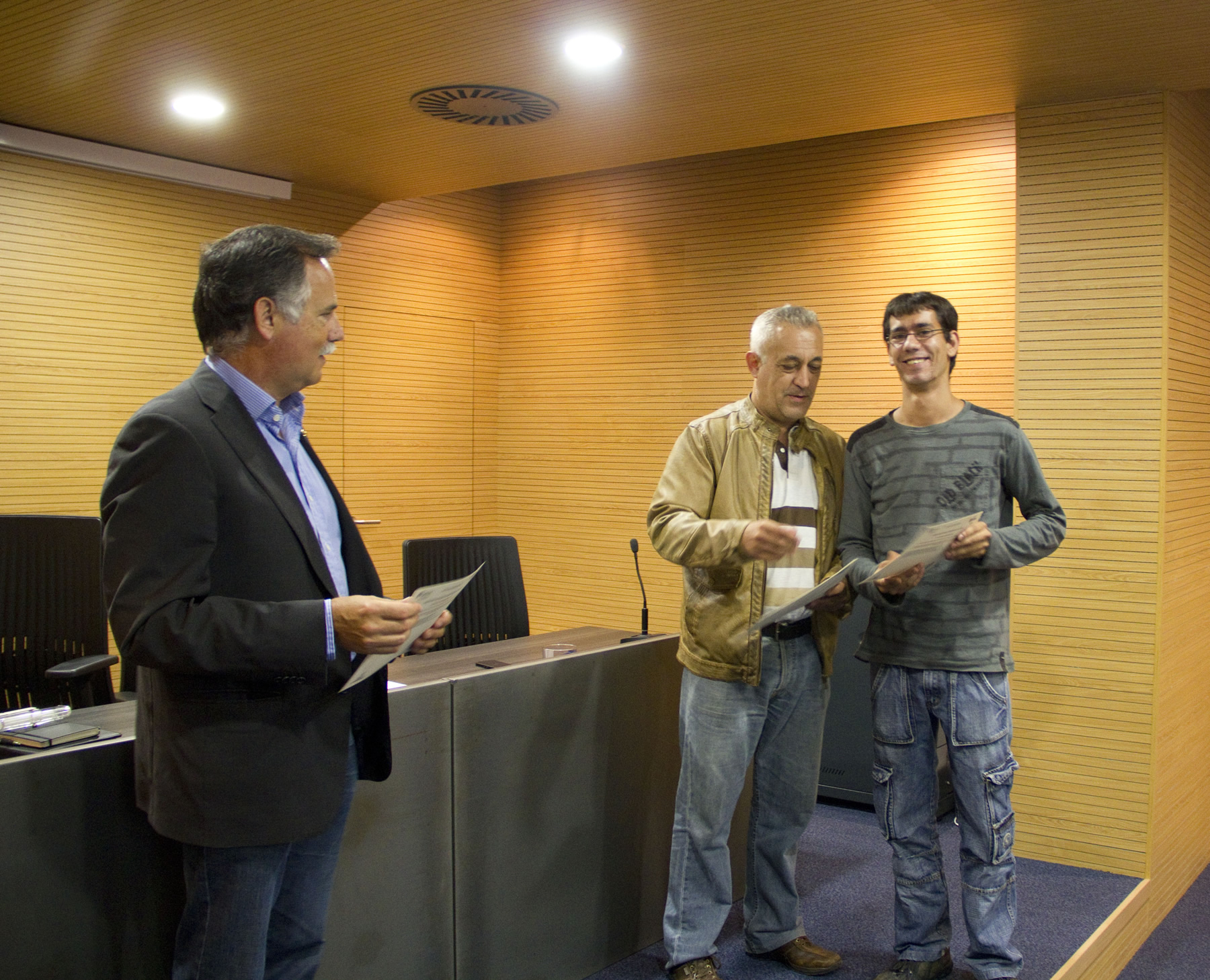 El Programa de Empleo y Formación en Fibra Óptica ha concluido esta semana, al finalizar los contratos de trabajo de las personas participantes en el mismo el último día de septiembre. Por ese motivo el lunes se realizó la entrega de diplomas a los alumnos/as-trabajadores/as del programa en un sencillo acto realizado en Izarra Centre. Acto que presidieron el director de la Armería Eskola, José Luis Novoa, y el teniente de alcalde y concejal de Secretaría, Modernización y Nuevas Tecnologías, José Luis Clemente. El grupo ha recibido formación específica sobre instalación y componentes de fibra óptica y ha adquirido experiencia en ese campo con un contrato de trabajo de seis meses. Por ello, han recibido un certificado de profesionalidad que acredita su cualificación en ese campo. Novoa felicito al grupo por “concluir el curso y por esa capacitación que puede posibilitarles un puesto de trabajo”. Clemente, por su parte, incidió en dos ideas, que el grupo “está en buena disposición para competir en el mercado laboral porque acredita formación y experiencia, lo cual es una buena oportunidad”. Y que “el proyecto no acaba aquí, porque hay más pueblos que están estudian do desplegar fibra óptica y habrá nueva posibilidades”. El edil dio las gracias al grupo por su esfuerzo y por su aportación.
