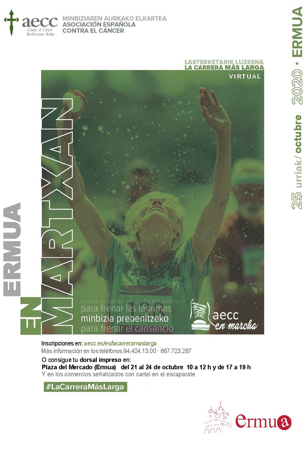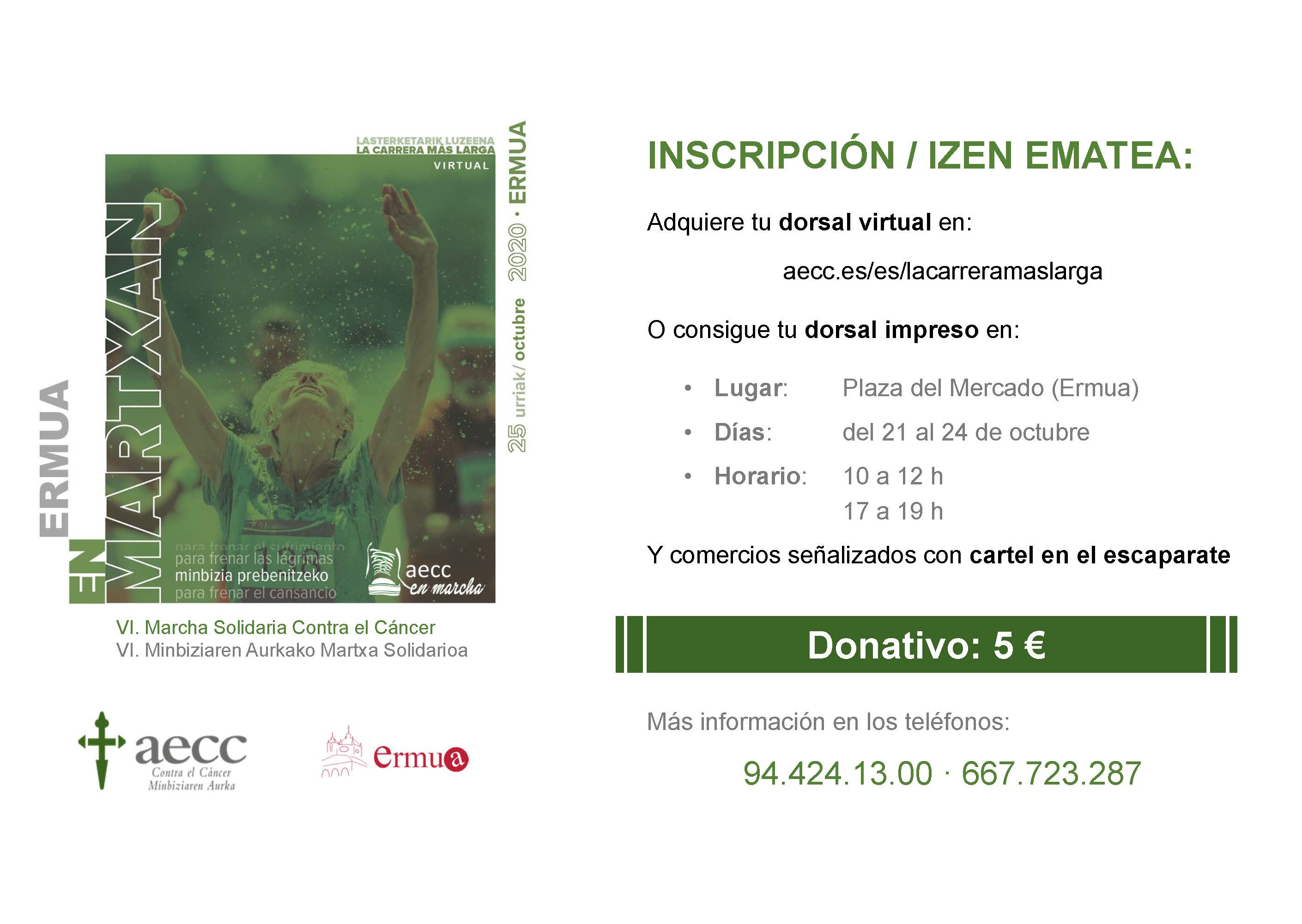 La Sede Local de Ermua de la Asociación Española Contra el Cáncer (AECC) ha organizado la sexta edición de la Marcha Solidaria contra el Cáncer para el próximo domingo 25 de octubre, que se desarrollará de forma virtual.