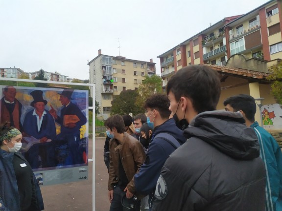 Estudiantes del Instituto Municipal de Formación Profesional Básica Ermua-Mallabia han visitado la exposición itinerante del Museo de Bellas Artes de Bilbao a su paso por la localidad de Mallabia. El alumnado de segundo año de las especialidades de Mecanizado, Peluquería y Automoción ha tenido la oportunidad de conocer varias de las obras del museo, aprender cómo interpretar el arte y dar su visión de los cuadros.