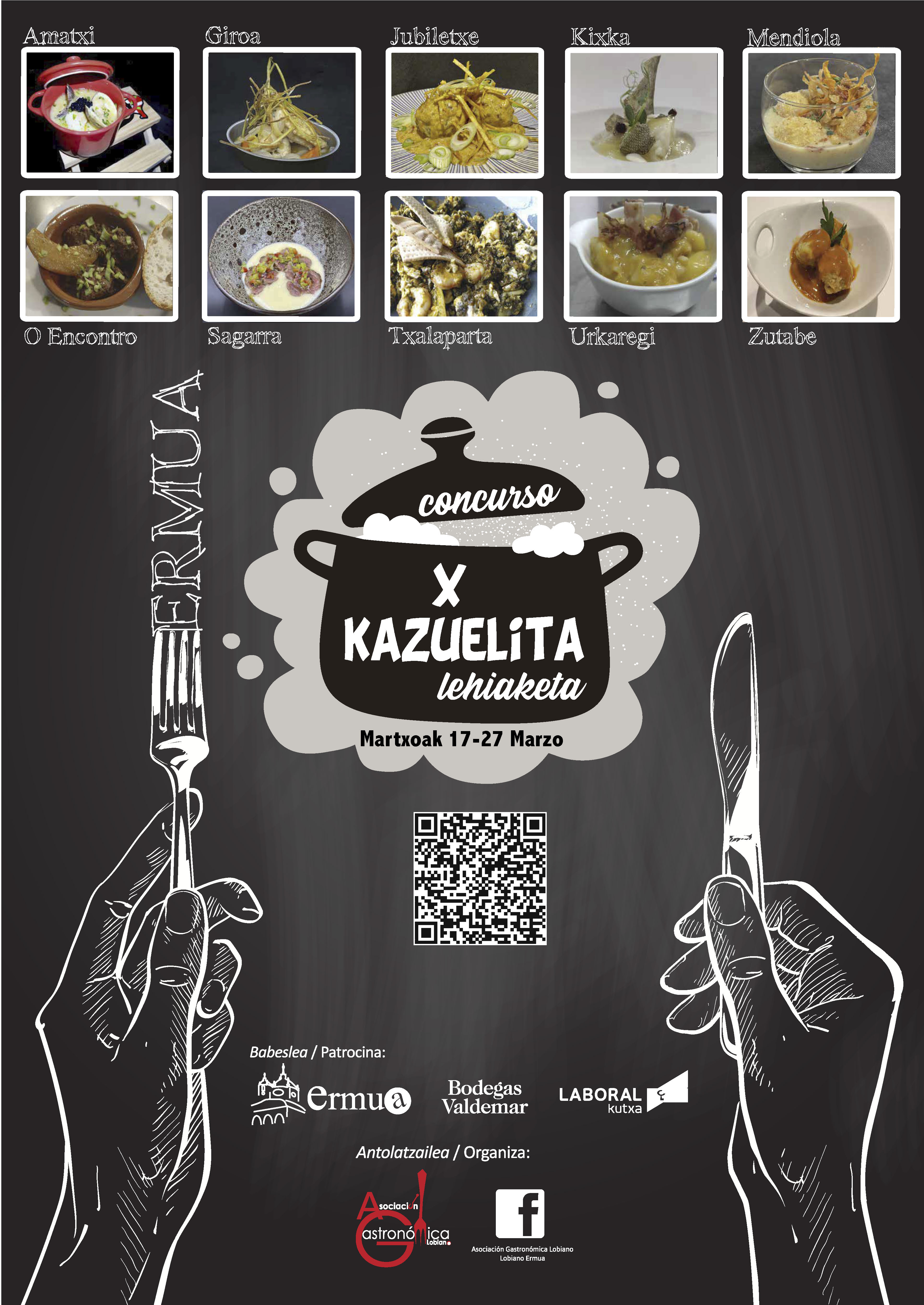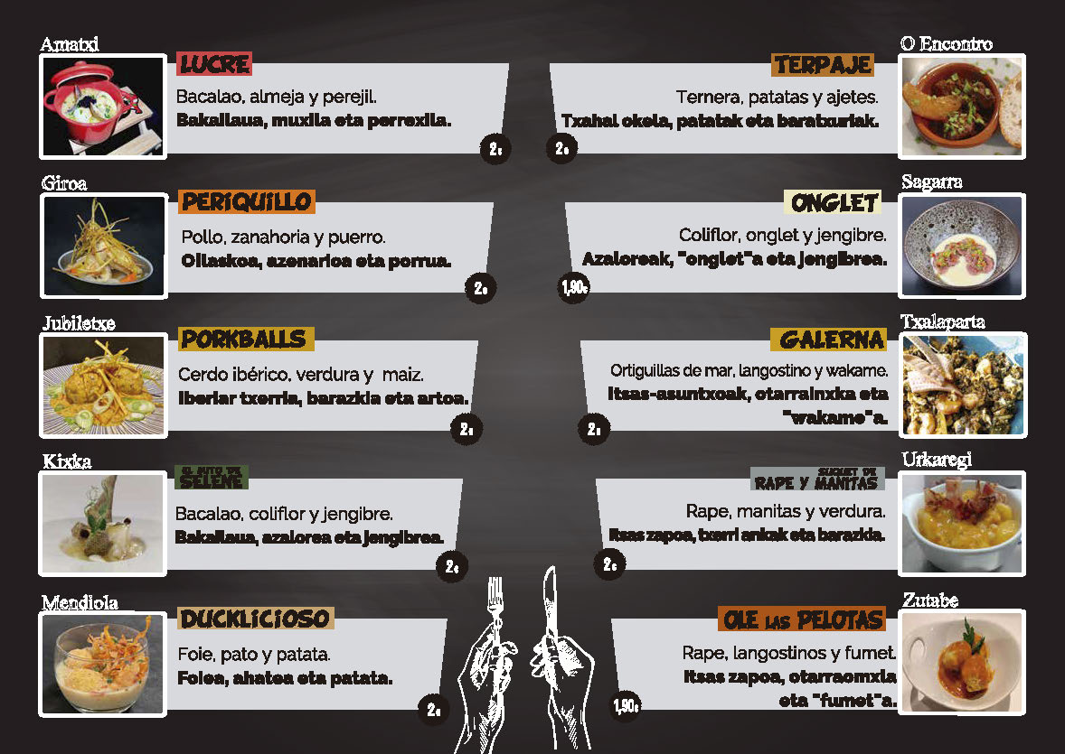 Diez establecimientos participarán y competirán entre sí con otras tantas delicias de ración, por sorprender al cliente/a, satisfacer su expectativa culinaria y, por ganar, el título de la X. Edición del concurso de cazuelitas de Ermua.