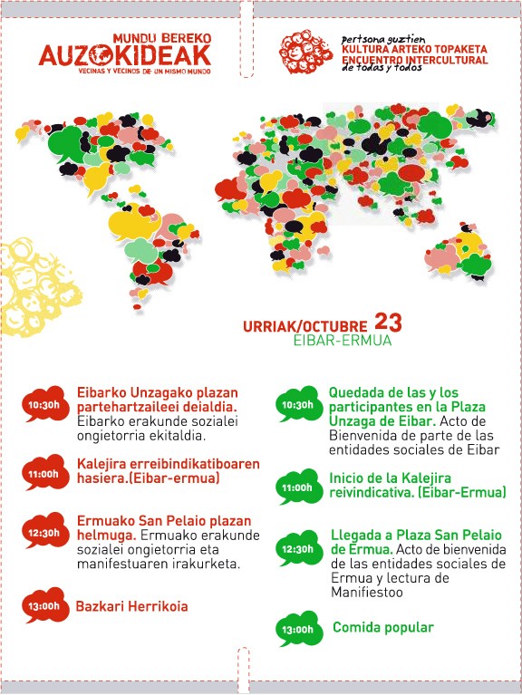 Cartel de la X. edición del Encuentro Intercultural de todas las personas que organiza la coordinadora de ONGs de Euskadi para Ayudar a Inmigrantes