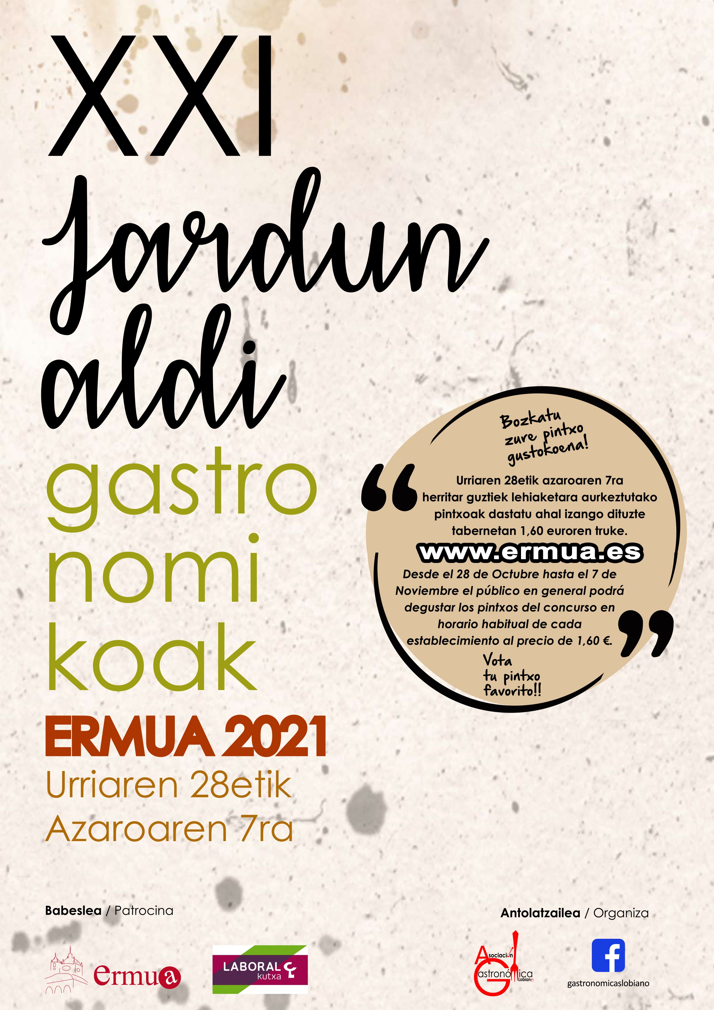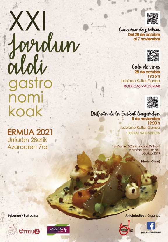 Ermua retomará la actividad de las Jornadas Gastronómicas con una edición más modesta y breve, como una muestra más del retorno a la normalidad. Será la vigésimo primera edición, a celebrar del 28 de octubre al 7 de noviembre y lo ha organizado la Asociación Gastronómica Lobiano.