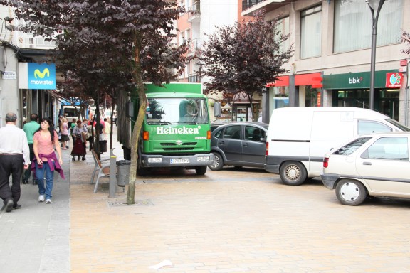 En el proceso de reordenación de las zonas de carga y descarga del municipio de Ermua se ha abordado la situación de Zubiaurre. Es un espacio peatonal y está abierto de 8 a 12 h para la carga y descarga de mercancias. Sin embargo, no sólo entran y lo ocupan las furgonetas y camiones de reparto, su uso es intensivo y los coches particulares lo invaden.