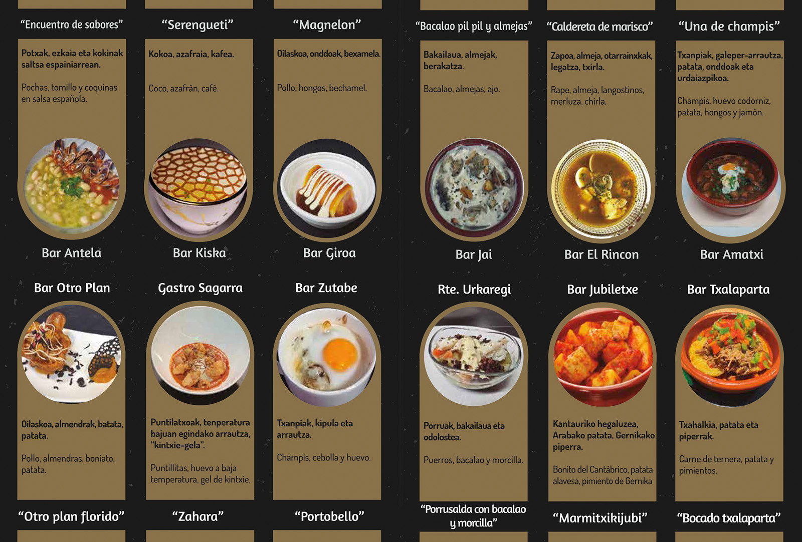 | Una de champis | Amatxi | Champis, huevo de codorniz, patata, hongos y jamón |