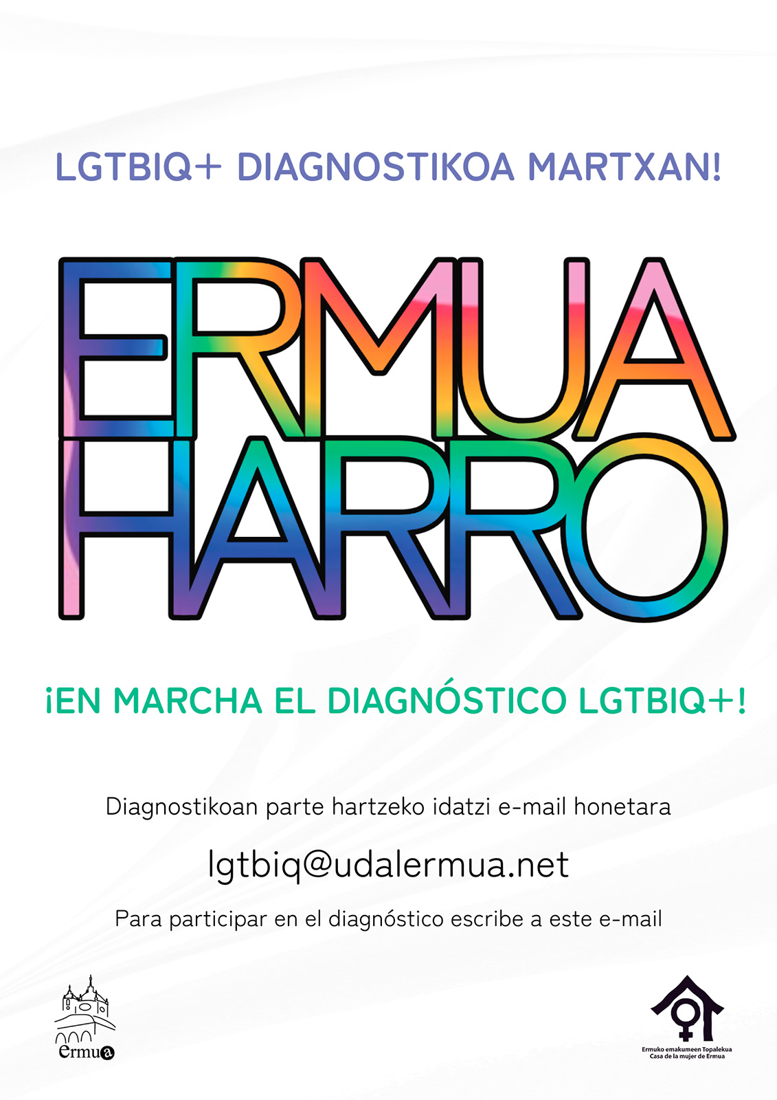 El Ayuntamiento de Ermua ha iniciado el proceso para elaborar el Diagnóstico LGTBIQ+ del municipio, un proyecto estratégico que permitirá conocer con mayor profundidad la realidad, necesidades, demandas y obstáculos que vive la población LGTBIQ+ de la localidad.