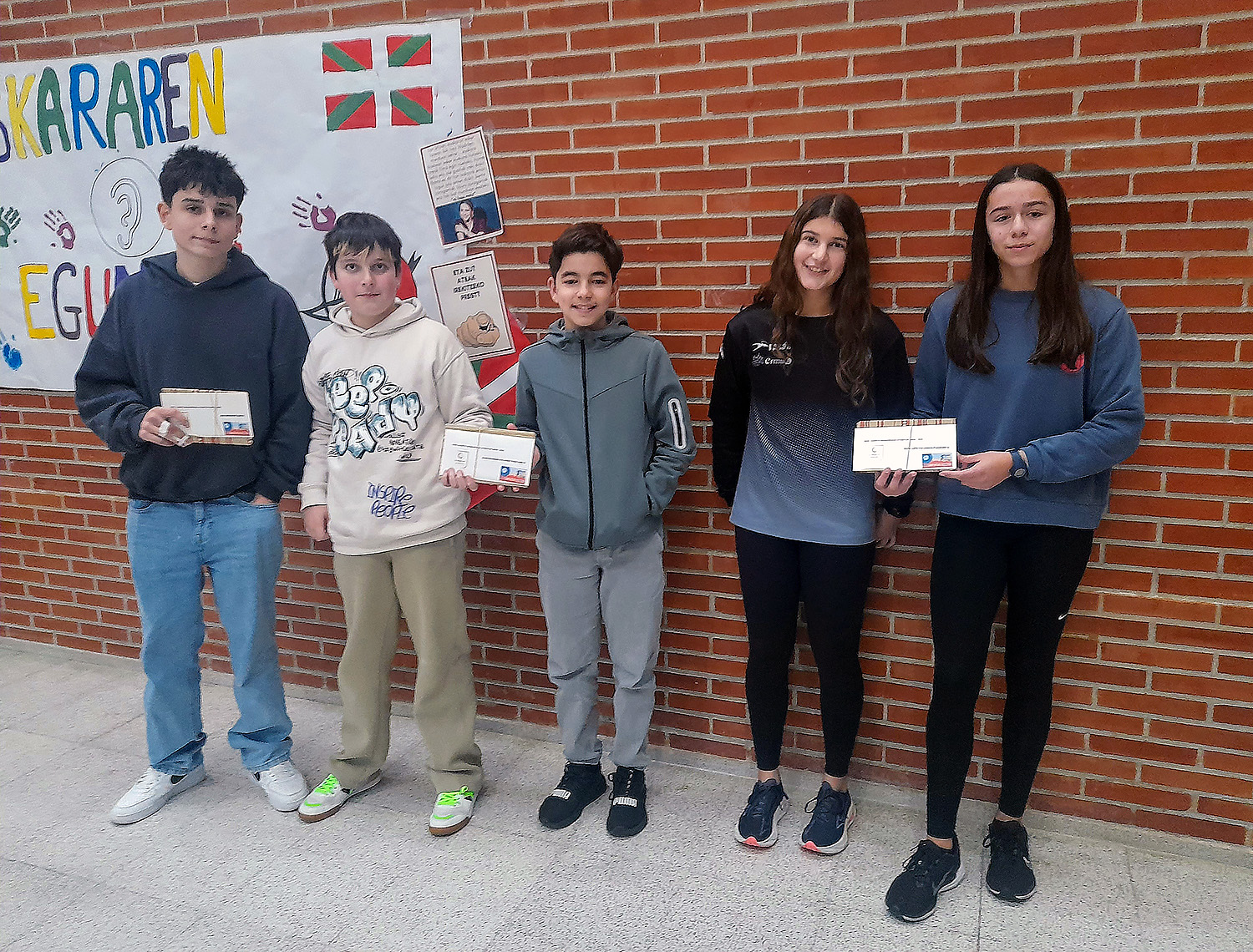 En esta edición han sido premiados los/as alumnas/os de los centros escolares Anaitasuna Ikastola, Eskolabarri, San Lorenzo, San Pelayo y Ermua BHI: