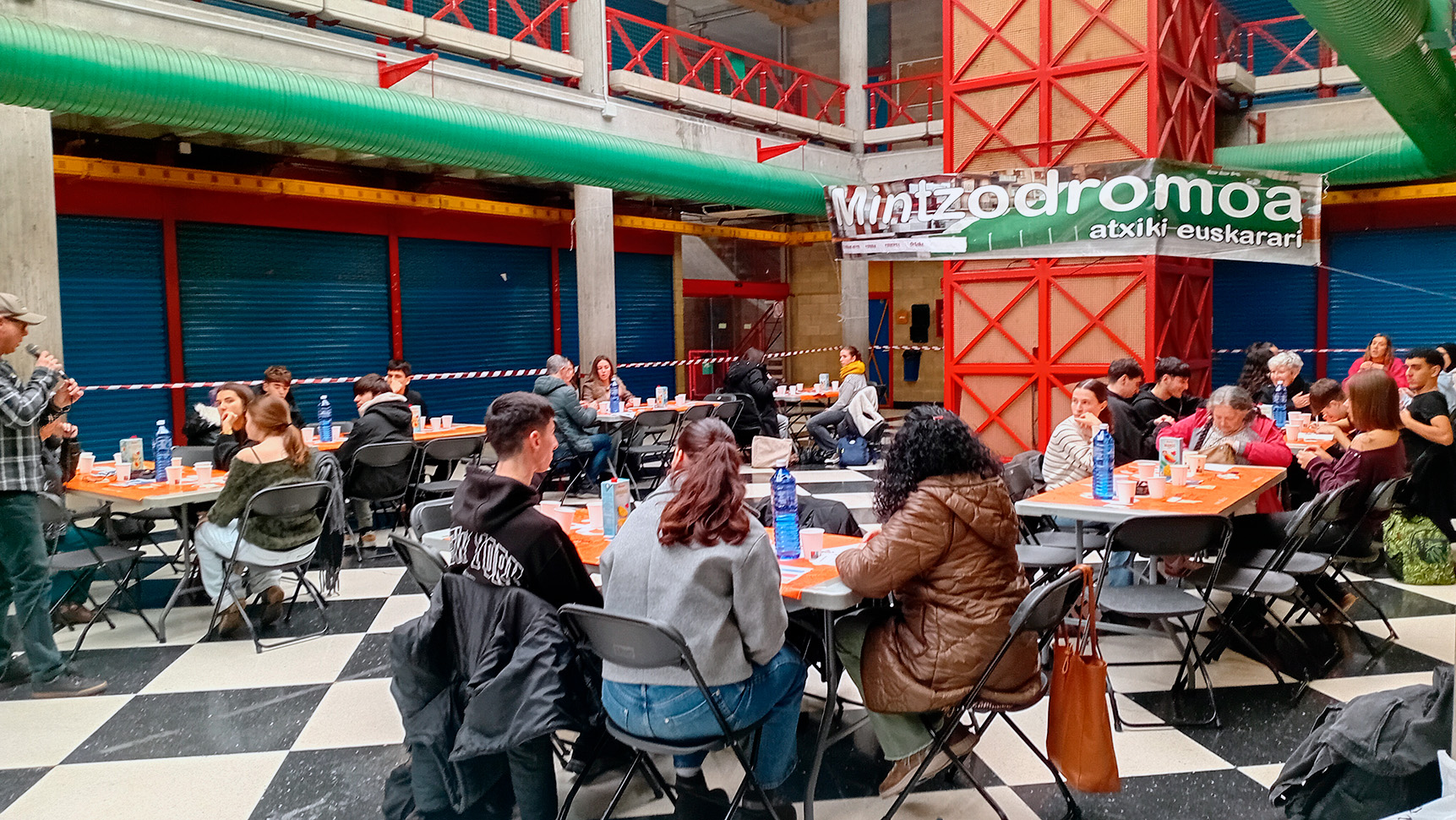 Por la mañana, en la antigua plaza del Mercado, los miembros de Berbalagun y el alumnado del Instituto se reunieron’ para intercambiar opiniones y charlar en euskera, en el ‘Mintzodromo. Una oportunidad única para conocer y practicar gente nueva en euskera.