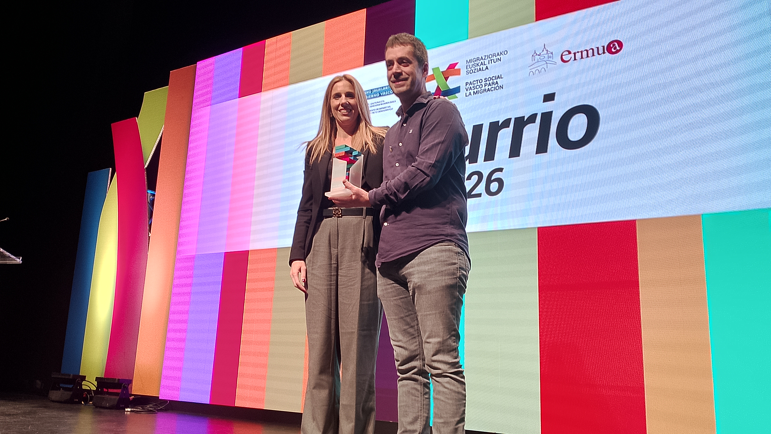 El Departamento de Bienestar Social, Juventud y Reto Demográfico ha celebrado en Ermua el acto anual de reconocimiento al impulso a la integración de las personas migradas. En este acto, promovido por el Pacto Social Vasco para la Migración, se reconoce el trabajo realizado por personas y colectivos que trabajan por la convivencia y la diversidad.