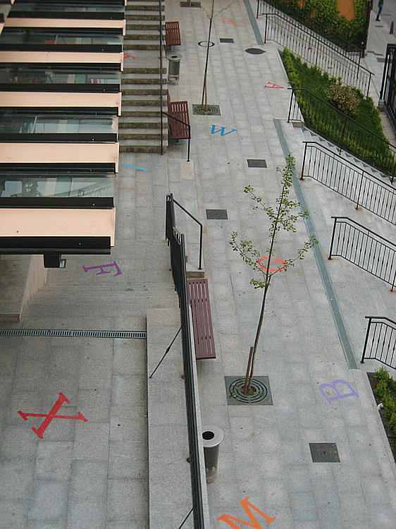 Así pues, estas letras pintadas en el suelo identifican esta zona de la villa, el espacio en el que confluyen diversos servicios culturales, ya que junto a la biblioteca también se encuentran Lobiano, la Escuela de Música y el Cinema. Al mismo tiempo esta intervención urbanística contribuye a dar visibilidad a los citados servicios, presentándolos como uno de los elementos destacados de este entorno cultural.