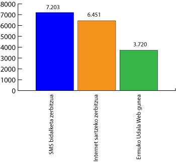 Terminal hauek zerbitzu dezente herritarrei eskaintzen diete, baina zalantzarik gabe, SMS (Mezu Laburren Zerbitzua) bidalketa zerbitzua eta Interneten sartzeko zerbitzua gehien erabiltzen dituen zerbitzuak dira. Hori horrela, 7000 SMS baino gehiago bidali egin dira eta jendea Interneten 6000 aldi baino gehiago sartu da, 3720 aldiz gure Web gunean. Miguel Ángel Blanco Gehien erabilitako puntua Miguel Angel Blanco kiroldegian kokatuta dagoen puntua izan da (13000 kontsulta) eta gutxien erabilitako puntua Miguel de Unamuno zentroan kokatuta dagoen puntua izan da. (2000 kontsulta)