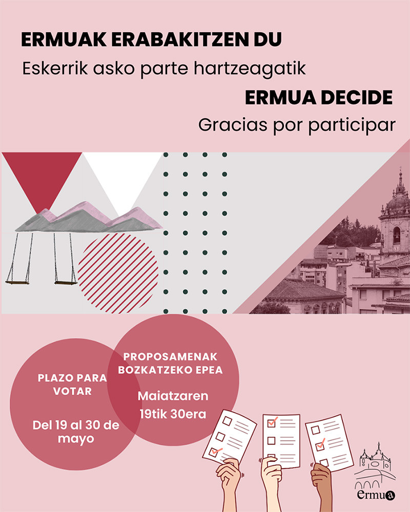 Udal honek parte hartu eta proposamenak bidali dituzten pertsona guztien lana eta konpromisoa eskertu nahi du. Guztion ekarpenak Ermua hobea lortzeko balioko du.