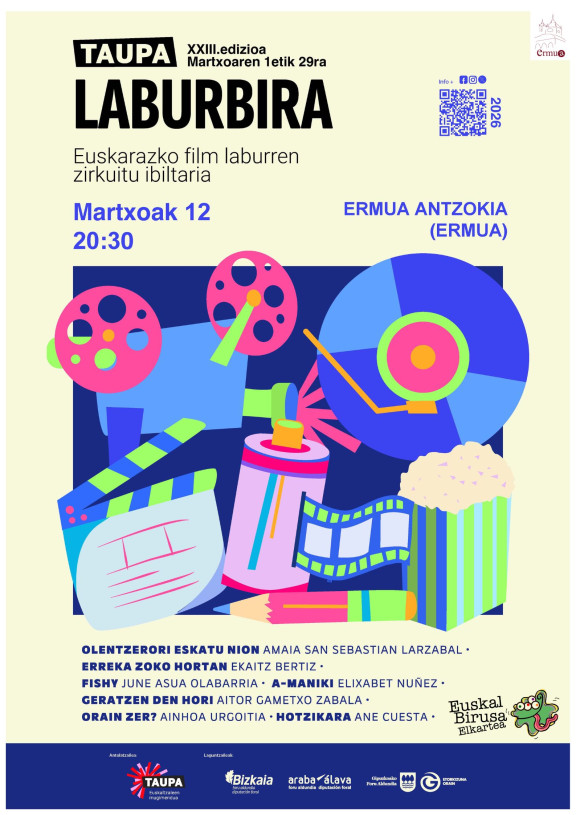 Ermua Antzokiak lau estreinaldi zinematografiko proiektatuko ditu aste honetan. Osteguneko zineklubak euskarazko film laburren zirkuitu ibiltariaren hogeita hamahirugarren edizioko lanak eskainiko ditu, 20:30etik aurrera. ‘Laburbira'k zazpi film labur biltzen ditu, horietatik bost zuzendari emakumeenak eta beste biak zuzendari gizonezkoenak. Proiekzioaren ondoren, solasaldia izango da Ane Cuesta errealiarekin. ‘Taupak 'antolatuta,‘ Euskal Birusa' elkartearen laguntzarekin.