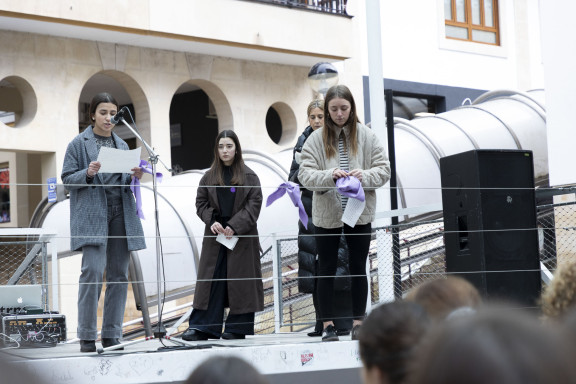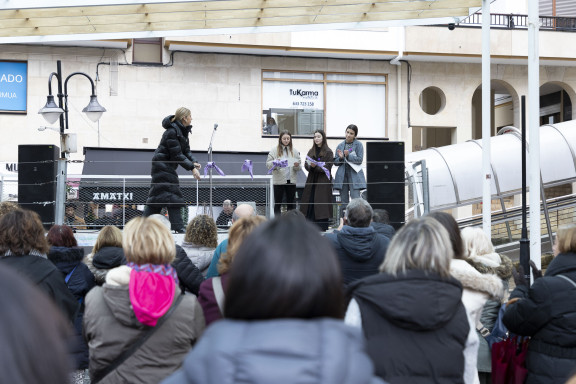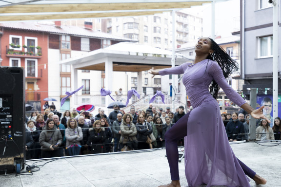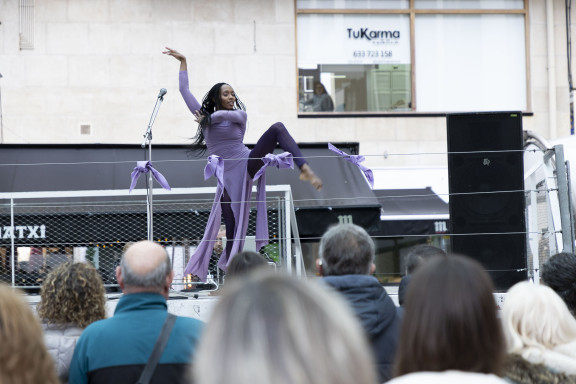 Dairi Brown dantzariak eta Institutuko ikasleek parte hartu dute elkarretaratze ekitaldian. Mugimendu feministak mobilizaziora deituta du 19:00etarako, Orbe Kardinalaren plazan.