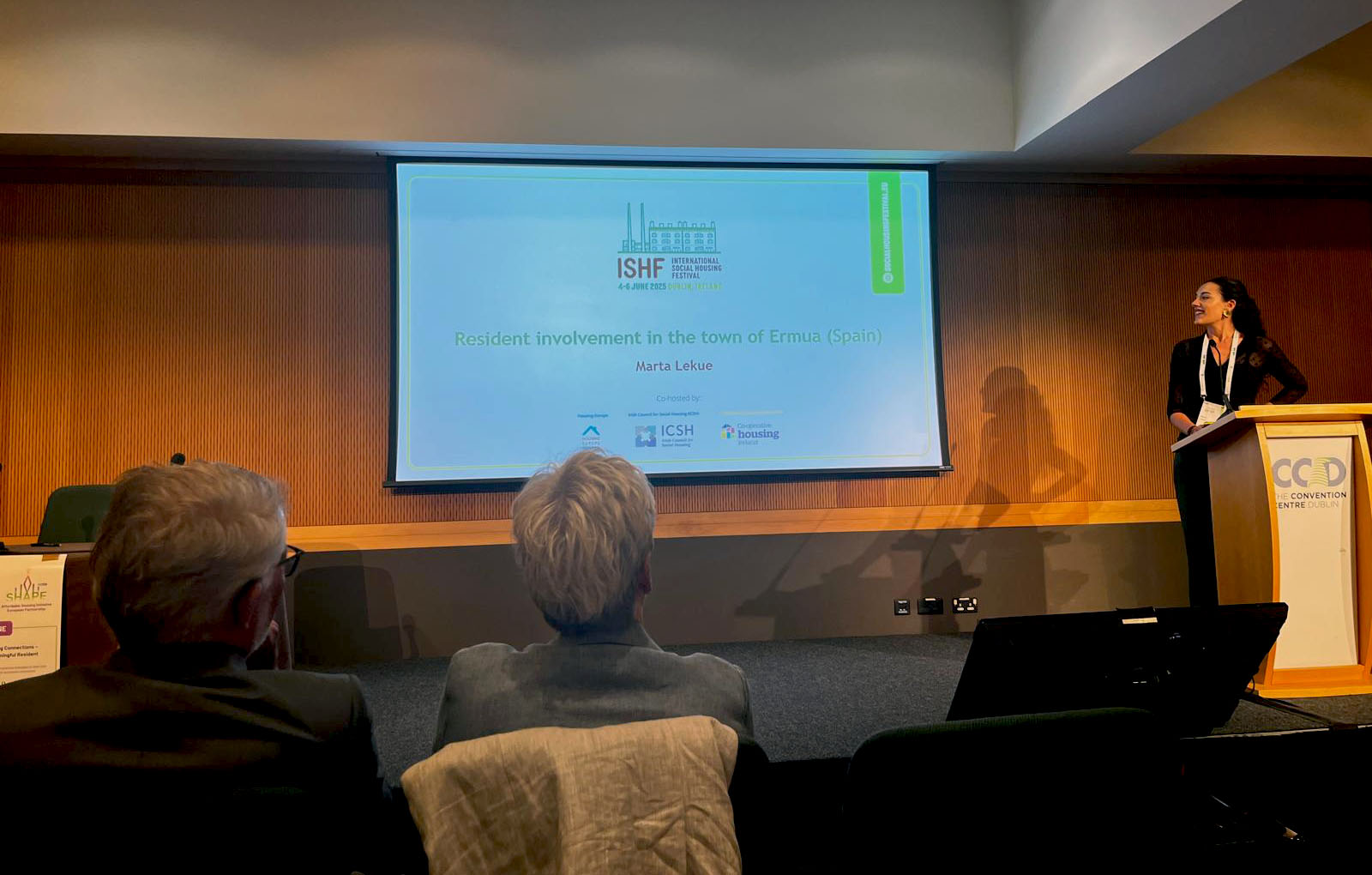 Ermuko Udalak ekainaren 4tik 6ra Dublinen egin den ‘International Social Housing Festival’ (Etxebizitza Sozialen Nazioarteko Jaialdia) ekimenean parte hartu du. Ermuaren esku-hartzea Europar Batasuna babesten duen Europako Elkartearen Etxebizitza Eskuragarriaren Ekimenaren barruan kokatzen zen. Bere partehartzea ‘drOp’ proiektu europarraren azken mintegia antolatzea izan da, Ermua bertako bazkide koordinatzailea delako. Ekitaldi horretan sei kontinenteetako 20.000 pertsona baino gehiago bildu ziren, eta etxebizitza sozial, kooperatibo eta publikoaren inguruko esperientziak, ideiak eta jardunbide egokiak partekatzea izan zuten helburu. Horretarako, ‘Storytelling’ tresna erabili zen. Ermutik Josu Ansola Garapen Ekonomikoko zuzendaria eta Marta Lekue ‘drOp’ proiektuko teknikaria joan ziren.