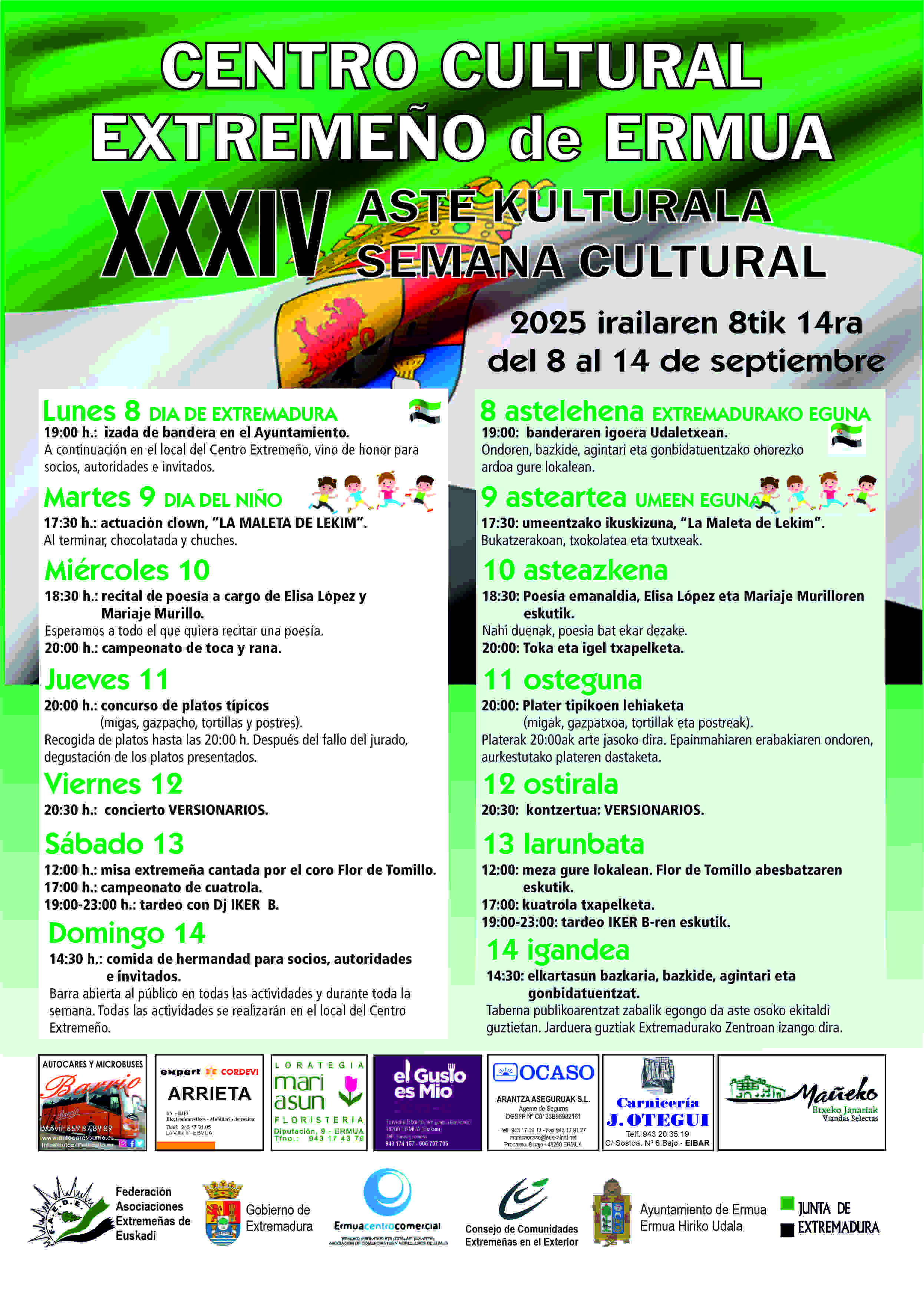 Extremadurako Ermuko Etxeak XXXIV. Kultur Asteari hasiera emango dio gaur. Irailaren 8a, Extremadurako Eguna dela eta, Zentroak hainbat jarduera antolatu ditu aste osorako.