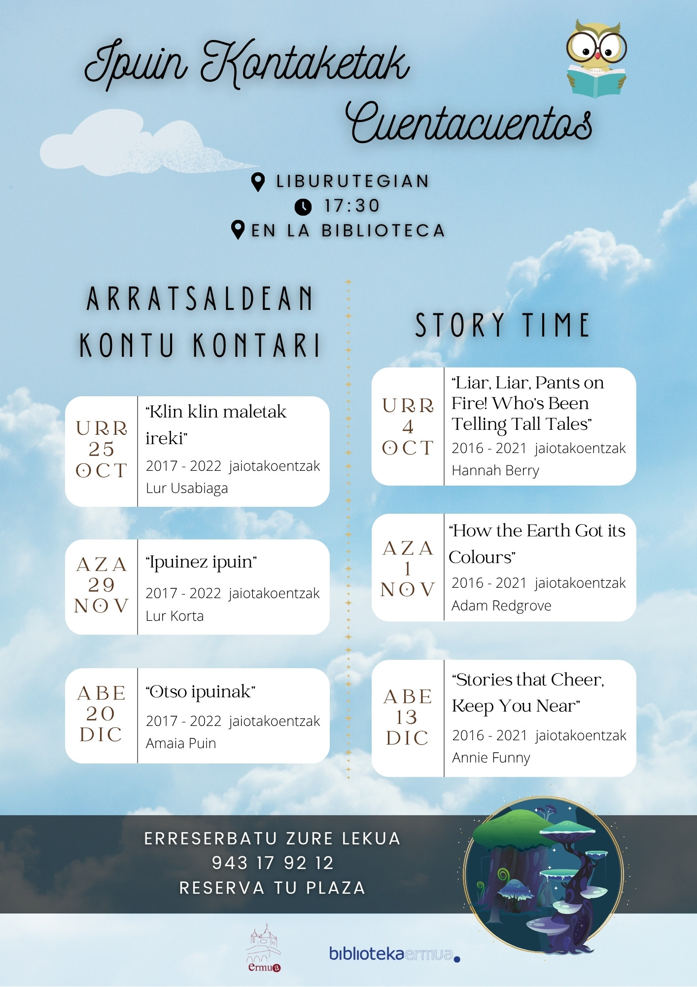 Larunbat honetan ipuin kontaketa saioa izango Liburutegian