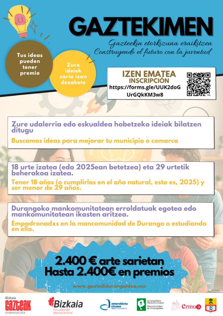 Durangoko Mankomunitateak, Bizkaia Gazteak planaren barruan, gazteentzako (18 eta 29 urte bitartekoak) ideia-lehiaketa antolatzen du Durangoko Mankomunitateko herrietan edo mankomunitatearekin lotura akademikoa duten herrietan.