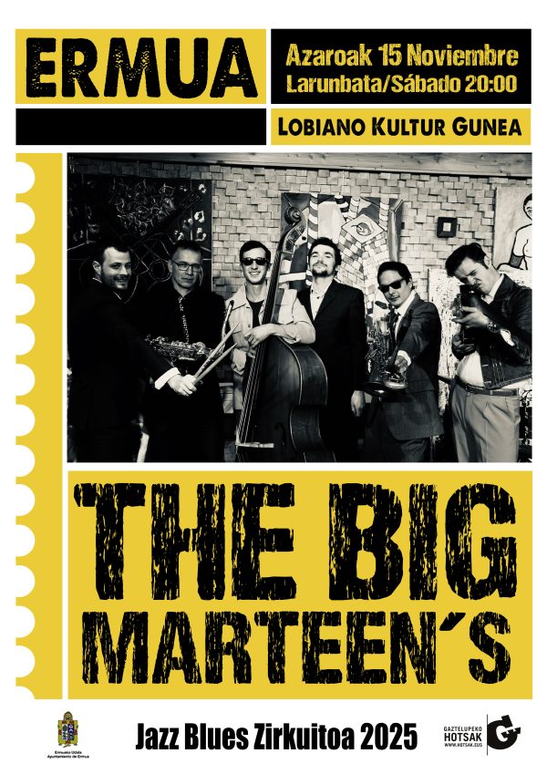 ‘The Big Marteen's’ talde frantziarra Lobiano Kultur Gunean arituko da larunbat honetan, 20:00etatik aurrera. Sarrerak 10 € balio du eta aldez aurretik eros dezakegu Lobianon eta Kutxabanken web atarian. Montpellier (Frantzia) hiritik datorren seikotea da. Zuzeneko bikaina duen taldea. Musikari apartak dira, eskola zaharrekoak, ikuslearekin konektatzen duten horietakoak. Eszenatokian jarrera bikaina eta dotorezia handia dute. Bere errepertorioa abesti propioekin eta Rhythm and bluesaren erreferentzia handien bertsioekin osatuta dago, Louis Jordan, Ray Charles edo Big Joe Turnerren eraginekin,...